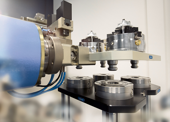 Naast de geautomatiseerde palletwissel kunnen ook volledige spanmiddelen worden gebruikt voor de automatische belading van machines. Ook hier wordt het nulpuntspansysteem Vero-S gebruikt als koppeling met de machine. Schunk Tandem plus krachtbediende spanners kunnen in de machine in enkele seconden worden gewisseld en door robots en Schunk-grijpers direct worden beladen met werkstukken. Snelwisselklauwen verhogen de flexibiliteit nog meer. Sommige gebruikers gaan nog verder: zij voorzien de Tandem plus krachtspanblokken buiten de machine van ruwe elementen en laten deze in gespannen staat door robots in de machine plaatsen. Het nulpuntspansysteem neemt dwarskrachten betrouwbaar op, zonder dat het werkstuk van positie verandert of er trillingen op de snijkant van het werkstuk ontstaan.