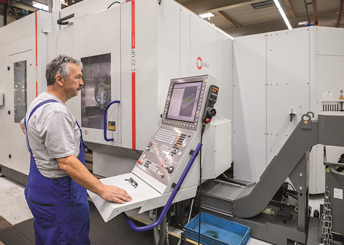 - Bediener Günter Schulz voor het 5-assige bewerkingscentrum C 22 UP van Hermle in de gereedschap- en matrijzenconstructie van de WMF Group.