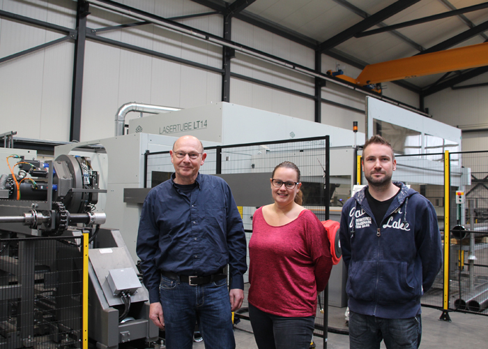 - Leon van Kerkhof, Lenny van Kerkhof en Pieter Fleuren bij hun nieuwste aanwinst: “Deze buislaser is een mooie aanvulling op ons pakket en er is een goede markt voor.