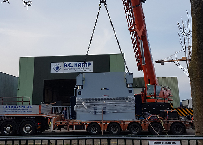 Vrijdag 9 januari 2018, 7.00 in de ochtend. Het is donker en het is koud. Voor Piet Kamp is het vandaag een belangrijke dag. Een grote investering doet haar intrede in zijn bedrijf P.C. Kamp Scheeps- en Konstruktiewerken. Het machinepark wordt uitgebreid met een nieuwe kantbank met een perskracht van 400 ton en een werkbreedte van 4 meter van het merk Uzma.