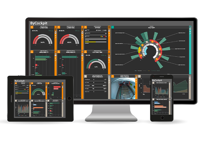 De ByCockpit levert real-time informatie over het metaalbewerkingsproces. De app visualiseert geselecteerde belangrijke indicatoren over de prestaties van de machine en efficiëntie van het produceren. Tijdens het ontwikkelen van de ByCockpit hebben Bystronics IT-specialisten goed gekeken naar een aantal metaalbewerkingsbedrijven. Hun leidende vraag was: hoe verkrijgen gebruikers informatie van hun machines om zo hun productieproces te analyseren en te optimaliseren?