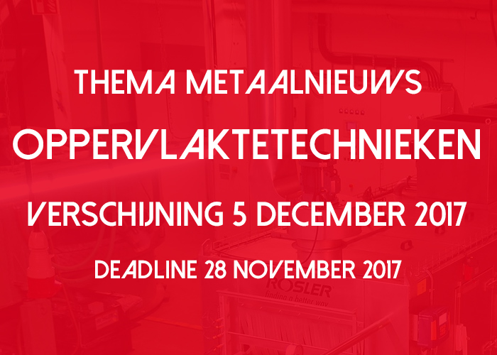 Na de TechniShow gaat MetaalNieuws verder met het themanummer Oppervlaktetechnieken. Editie 6 van MetaalNieuws zal natuurlijk terugblikken op de TechnShow en ESEF-Maakindustrie, maar zal grotendeels in het teken van staan van Oppervlaktetechnieken – hét vakgebied waarin innovatie, kwaliteit en duurzaamheid samenkomen.