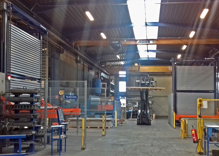 Voor al deze werkzaamheden beschikt de Achterhoekse toeleverancier over een machinepark met onder meer twee lasersnijmachines, drie waterjets, een autogeen snijmachine met vier koppen en drie kantbanken. Deze worden gevoed vanuit een uitgebreide voorraad plaatmateriaal in diverse staalsoorten, RVS en aluminium. Al dat materiaal lag opgeslagen in stellingen en een oud platenmagazijn. “Er stond hier ook altijd veel op de werkvloer”, herinnert Heezen zich. “Niet alleen de bedrijfsleiding wilde hier graag verandering in brengen, het was ook een wens van de mensen in de werkplaats om deze situatie te verbeteren. Ze moesten te vaak de heftruck gebruiken om een plaat uit de stelling te halen.”