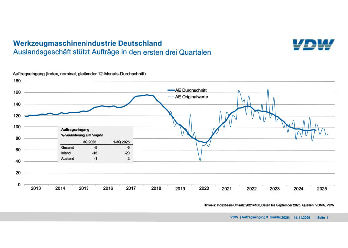 In het derde kwartaal van 2025 daalde de orderintake in de Duitse werktuigmachine-industrie met...