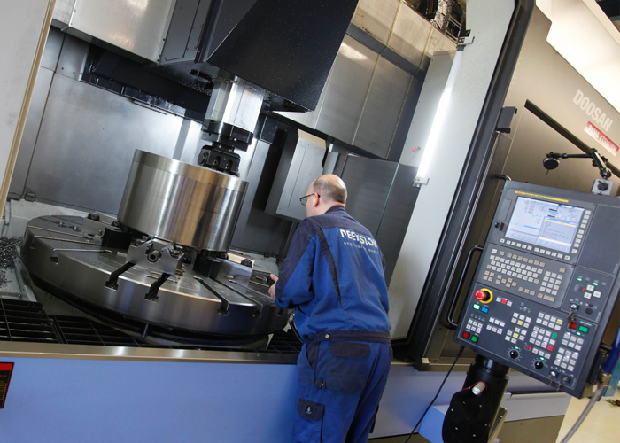 Johan Peekstok: “Met het herstel van de markt kwam ook de vraag naar grotere diameters. Opschalen van ø 700 naar ø 2000 is dan niet zo’n grote stap meer als wanneer je van ø 400 mm moet komen. Alle takelfaciliteiten waren immers al geschikt voor grotere en zwaardere werkstukken. De routing in de werkplaats was al voor een groot deel geschikt en de operators waren ervaren met het meten van grote werkstukken. Een jaar geleden hebben we daarom een Puma VTS 1620M van Doosan aangeschaft. Een verticale draaimachine uitgerust met een volwaardige freespil met Bigplus gereedschapopname en hoge drukunit, waarop we werkstukken kunnen maken die niet iedereen kan maken.”