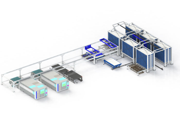 De productielijn bij EPM Metaaltechniek, bestaat uit een automatisch platenmagazijn met zes torens, een be- en ontladingsinstallatie en twee 12 kW Bolt VII 4020 plaatlasersnijmachines, voor de volautomatische productie van gesneden plaatdelen. Dankzij extra wisseltafels kan de de installatie ook halfautomatisch werken.