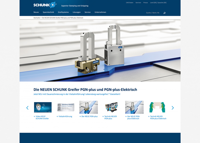 Bij de herlancering stonden vooral hoge gebruikersvriendelijkheid en intuïtieve bediening hoog in het vaandel. Op pc, tablet of smartphone: gebruikers kunnen zich snel oriënteren en bereiken in een paar stappen de gewenste informatie. Handige zoekmogelijkheden op trefwoorden, producten, sectoren en thema’s vergemakkelijken de navigatie. Alle relevante technische informatie is op verschillende niveau’s beschikbaar. Op de site is veel aanvullende informatie over de afzonderlijke componenten te vinden. Naast technische specificaties en CAD-bestanden in 2D en 3D formaten zijn er ook applicatie foto’s en video’s, catalogi, handleidingen en accessoires te vinden. Diverse best-practice voorbeelden geven een uitgebreid overzicht van de uiteenlopende toepassingsgebieden en oplossingen van Schunk componenten – van metaalbewerking in de automotive, food en elektrotechnische industrie tot optica, medische en houtbewerking.