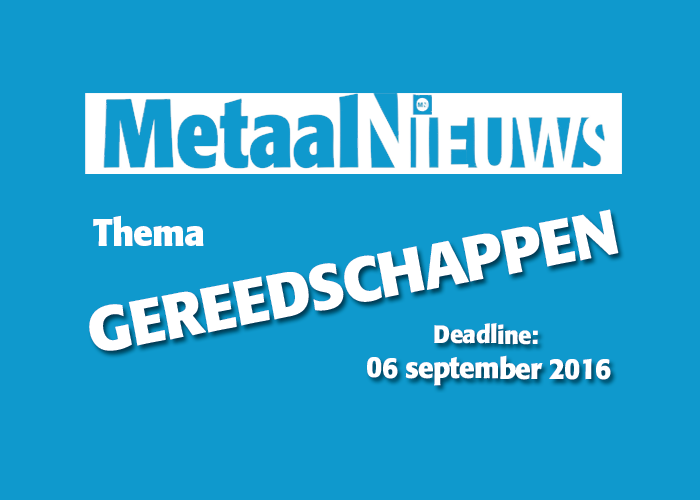 Op dinsdag 13 september 2016 verschijnt MetaalNieuws met een themanummer omtrent gereedschappen en dan in de breedste zin van het woord. Wilt […]