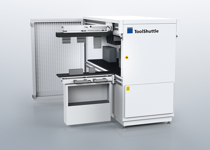 Voor nog meer productiviteit van de grootformaat machines van Trumpf biedt de ToolShuttle nu een bijzonder opslagsysteem voor onder- en bovengereedschappen. Hiermee kunnen de gebruikers zware gereedschappen goed handlen. De set-up van de machines wordt zo eenvoudiger en ergonomischer en insteltijden en zoektijden nemen af.