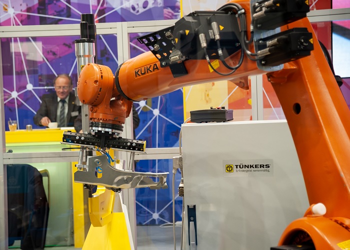 - Aan robotisering viel op de Euroblech-beursvloer niet te ontkomen.