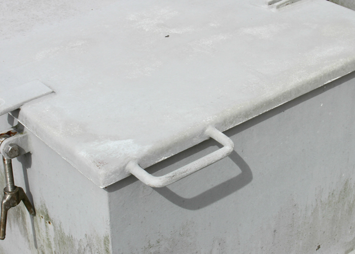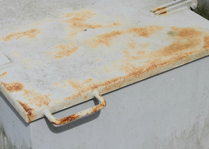 - Luik berging aan dek met vliegroest en het zelfde luik na roestbehandeling.