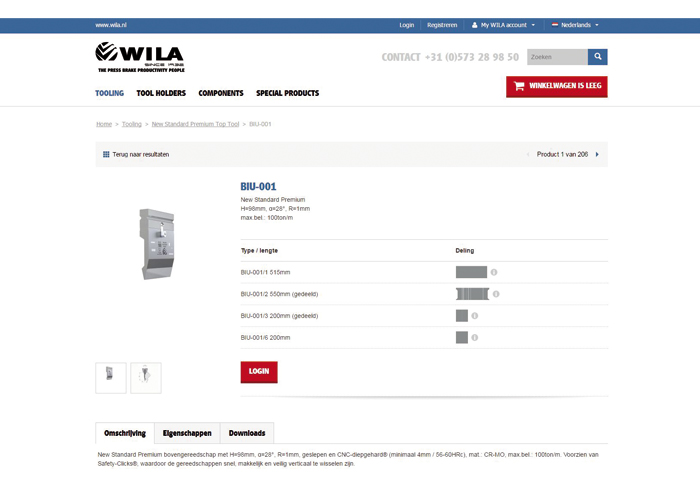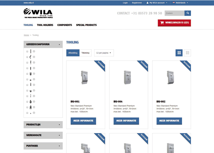 Om klanten nog beter van dienst te kunnen zijn, heeft WILA haar intuïtieve webshop voor gereedschappen gelanceerd. In deze webshop is een uitgebreid overzicht te vinden van standaard boven- en ondergereedschappen. In de webshop kunnen offertes direct worden opgevraagd, marktprijzen en levertijden worden weergegeven en bestellingen geplaatst.