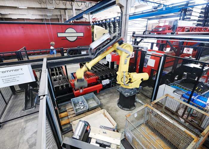 - Het Remmert brugmagazijn bij Schmolz + Bickenbach in Bielefeld. Het bijzondere aan dit project: naast vier handmatige machines is een volautomatische zaagcel met geïntegreerde sorteerrobot verbonden aan het magazijn.