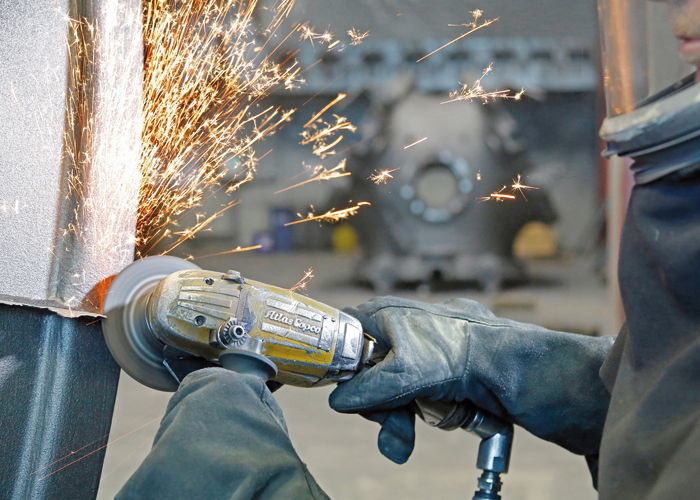 - In het GZO hebben voor zware voorbewerkings- en afbraamwerkzaamheden de 4,5 kilowatt sterke GTG-40-turboslijpmachines hun waarde bewezen. (Foto: Atlas Copco Tools)